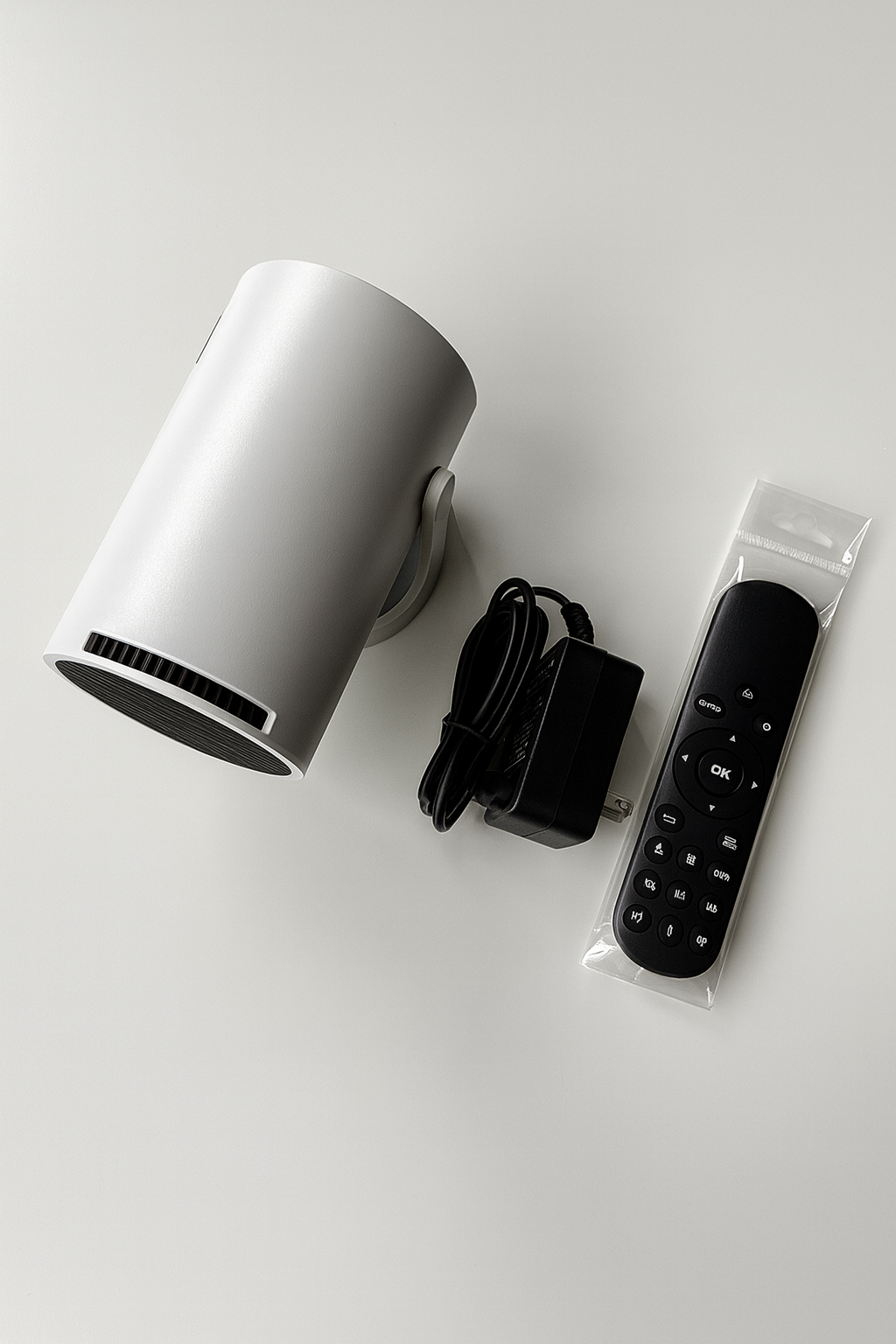 Proyector, mando a distancia, cable de alimentación y manual rápido.